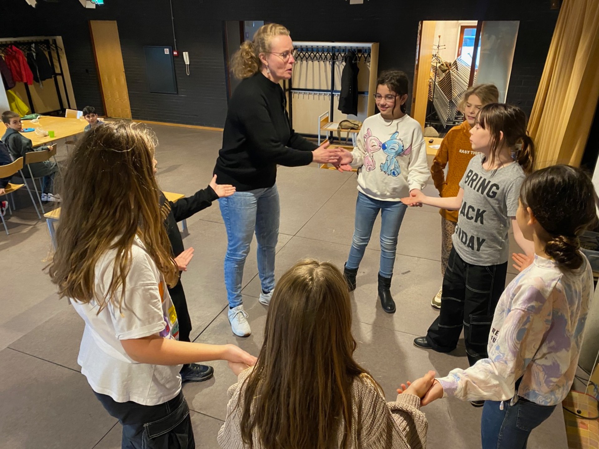Bij het maken van de hand met 5 vingers en komen we echt leuke dingen over elkaar te weten. De tongen komen los.