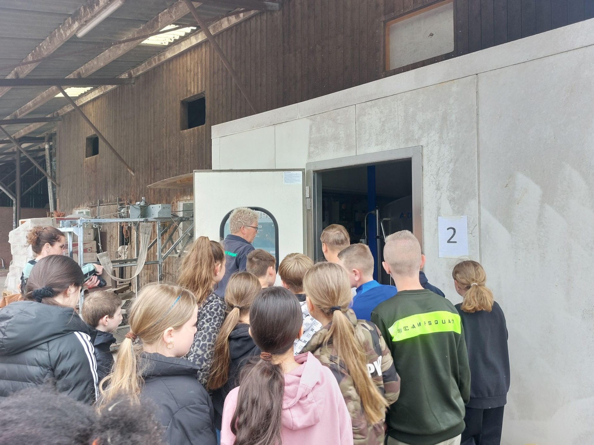 Na de lunch zijn we naar Hof Espelo gereden waar we verwelkomd werden door boerin Hermieke Voogd. Sommige kinderen hadden duidelijk moeite met de lucht maar de boerin legde uit dat het niet stinkt maar dat het anders ruikt dan je gewend bent ;-)