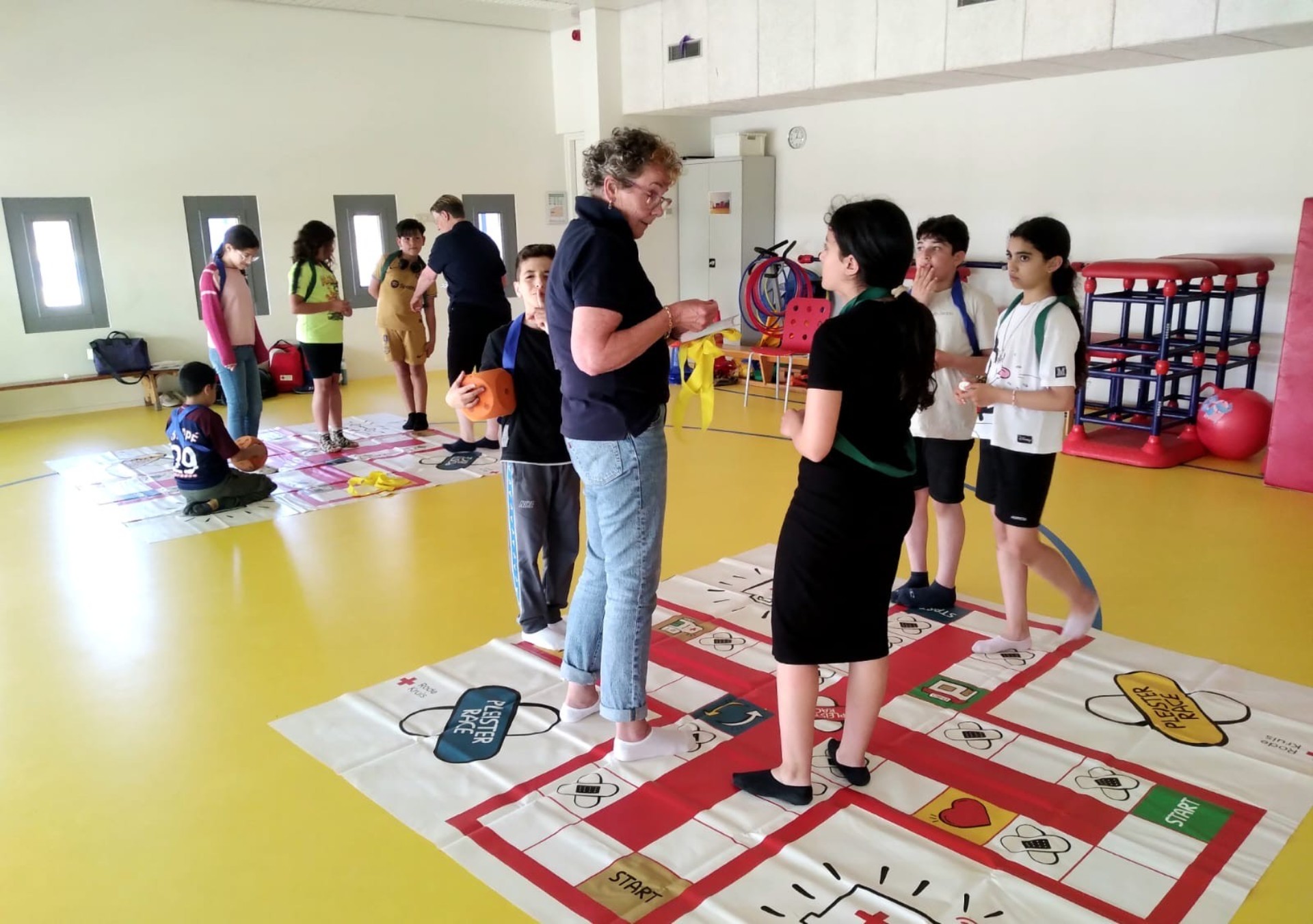 Er is veel verteld over het werk van het rode kruis en de kinderen hebben een pleister race spel gespeeld! Voor elk