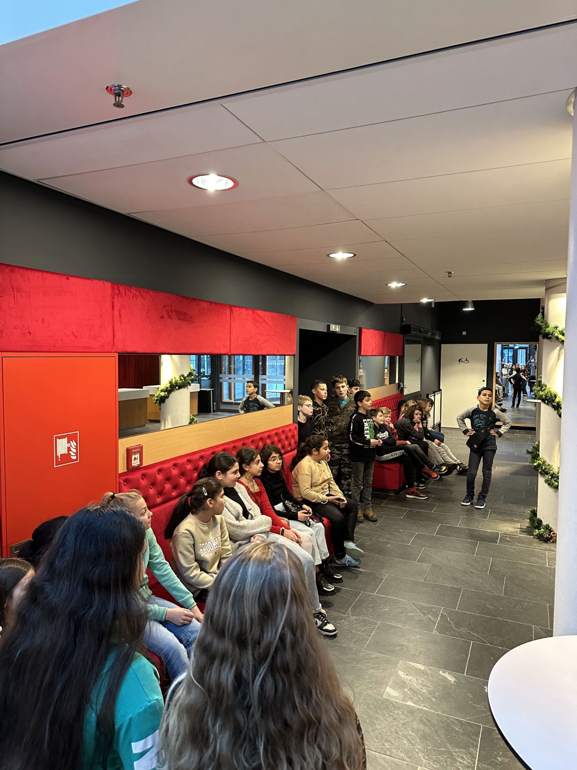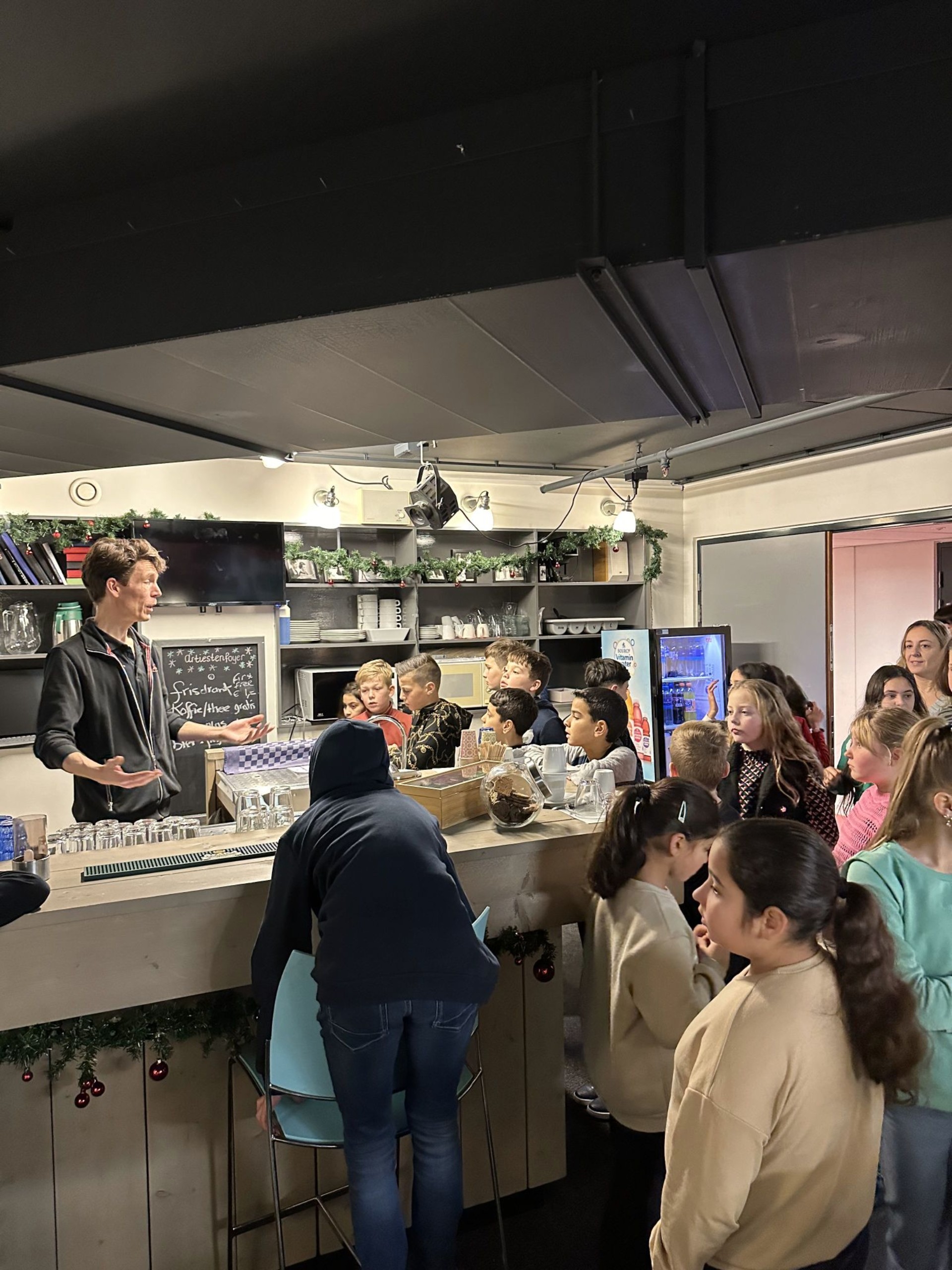 In de ochtend zijn we van start gegaan met het vieren van Sinterklaas doormiddel van een dobbelspel verdeeld in 2 rondes. Tijdens de eerst ronde hebben we de cadeaus mogen uitzoeken en zijn we doorgegaan totdat iedereen 2 cadeau's had gekregen. In de tweede ronde hebben we alle cadeaus uitgepakt en hebben we doorgespeeld totdat iedereen tevreden was. Op deze dag waren we ook uitgenodigd door de schouwburg in Hengelo om een kijkje achter de schermen te krijgen van dit indrukwekkende gebouw. Bij aankomst werden de kinderen welkom geheten en doorverwezen naar een van de kleinere zalen waar de groepen uitleg kregen over een werkdag van een werknemer van de technische dienst. Hier werd verteld wat er allemaal komt kijken bij het op- en afbouwen van het decor en bijvoorbeeld wat er tijdens een show allemaal moet gebeuren. Ook mochten de kinderen op het podium van de grootste zaal met maar liefst 880 stoelen. Na een rondleiding van ruim een uur was het programma ten einde en hebben we de gastdocent bedankt voor de geweldige middag.
